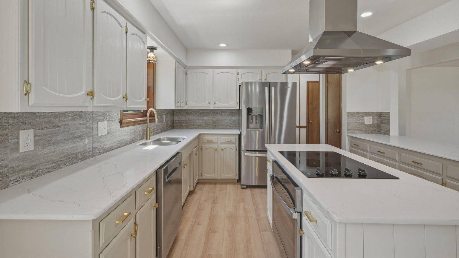 Beautifully remodeled brick ranch home situated on a 1.12-acre lot overlooking holes 6 and 7 of Eagle Creek Golf Club, offeri